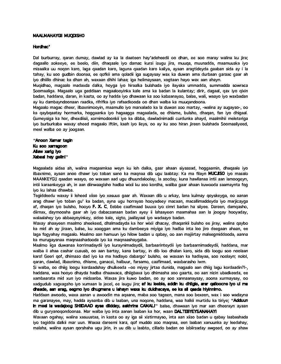 MAALMAHAYGII MUQDISHO